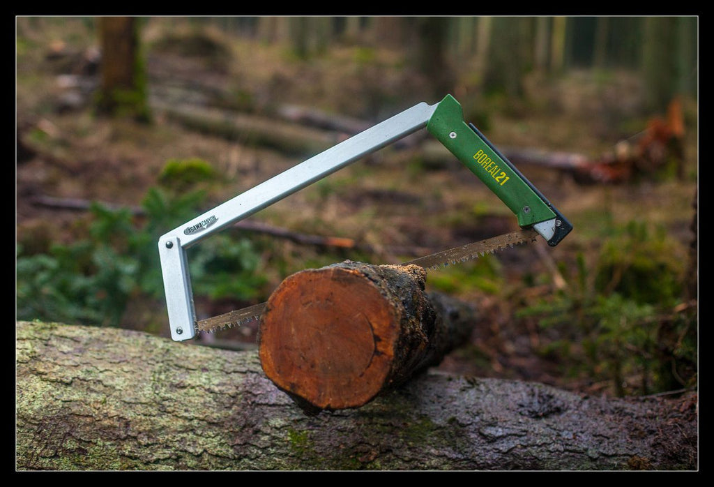 Saven er designet med en høj bøjle, så den giver mulighed for at save mellemstore stammer over og er perfekt til f.eks. vinter ture hvor der skal saves meget brænde og lign.