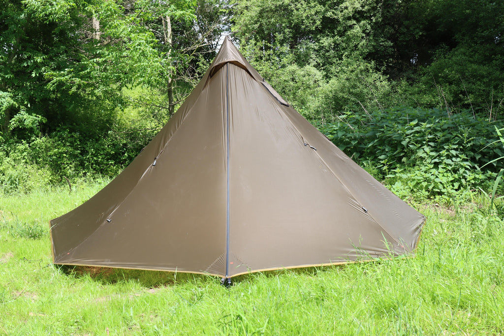 20D ripstop nylon telt med en vægt på bare1,3 kg. Måler 160 cm i højden og 320 cm diameter med plads til 4 personer, eller 2 personer med installeret brændeovn.
