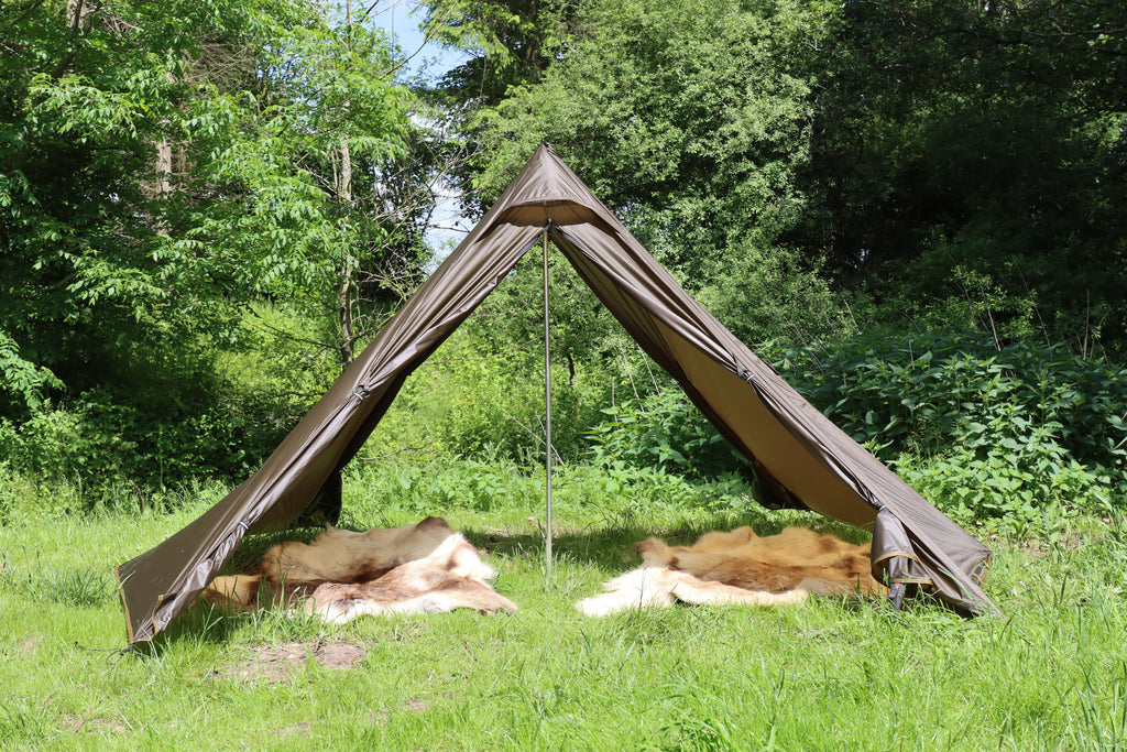 Moderne version er den velkendte Polske lavvu forberedt til brændeovn. Kommer med indgang i begge sider, ventilation i toppen, vandtætte lynlåse, midterstang og pløkker.