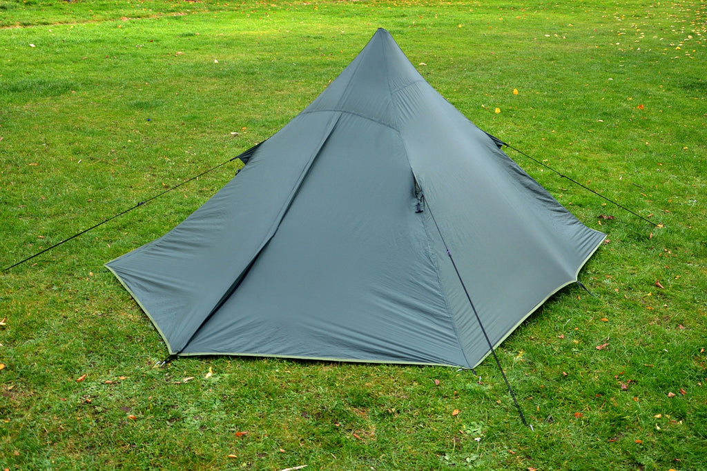 Pyramide teltet er rummeligt nok til en solocamper med en rygsæk eller komfortabelt til to personer.