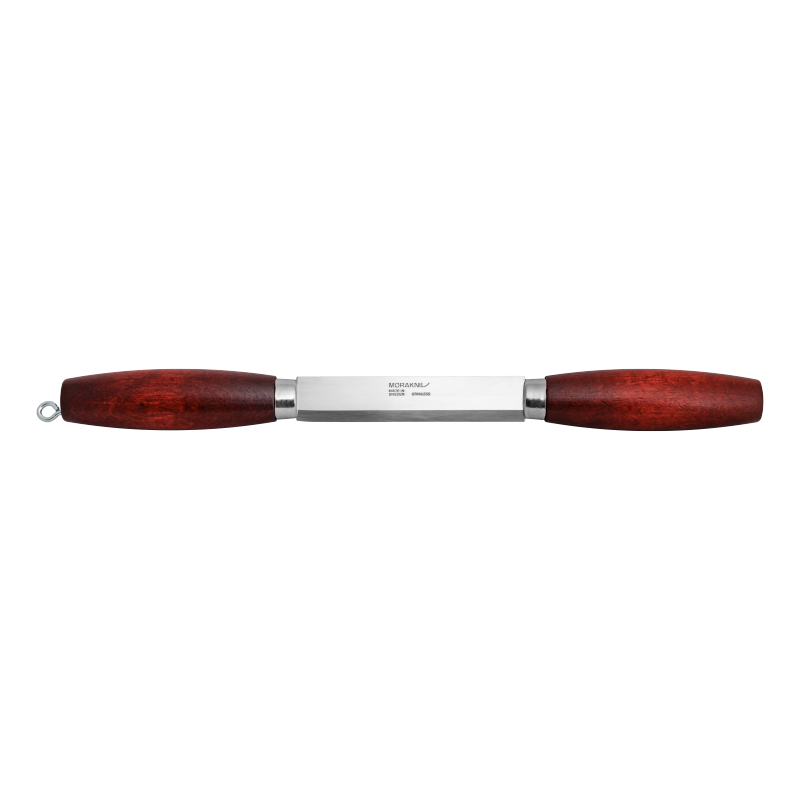 Mora - Båndkniv Classic Specifikationer - Mora Classic Båndkniv - Rød (Classic Woodsplitter) Blad længde - 115 mm Blad tykkelse - 2,5 mm Total længde - 363 mm Knivblad - Rustfrit stål Håndtag - Rød farvet Birk Vægt - 153 g