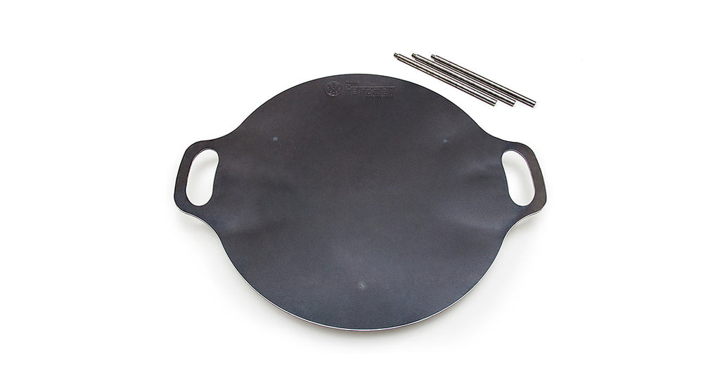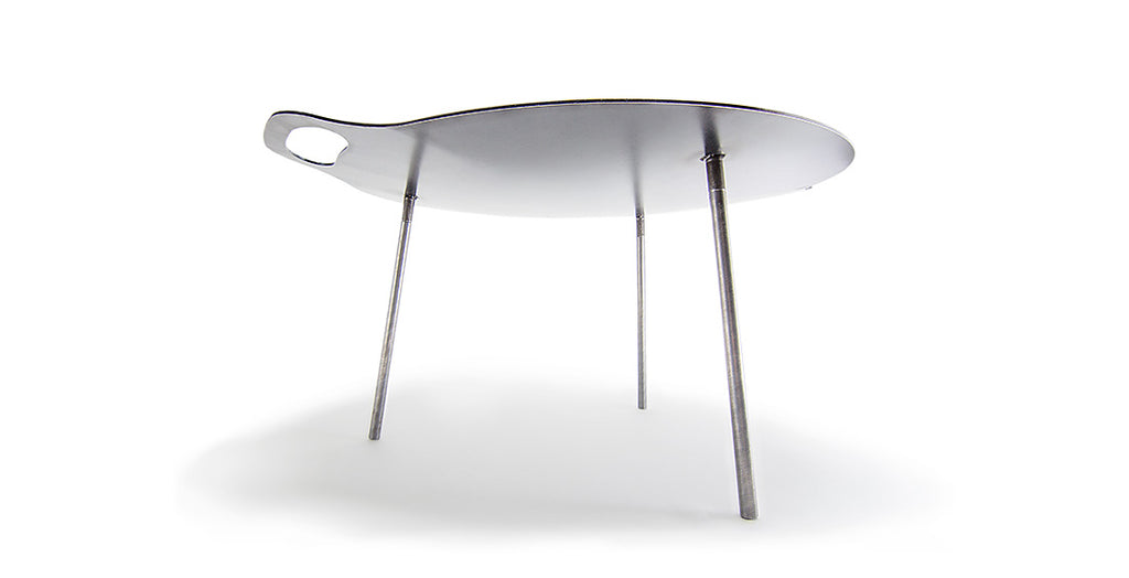 Stålpanderne kommer i 3 størrelser 38, 48 og 56 cm i diam. og har 3 robuste ben som nemt kan afmonteres ved transport.