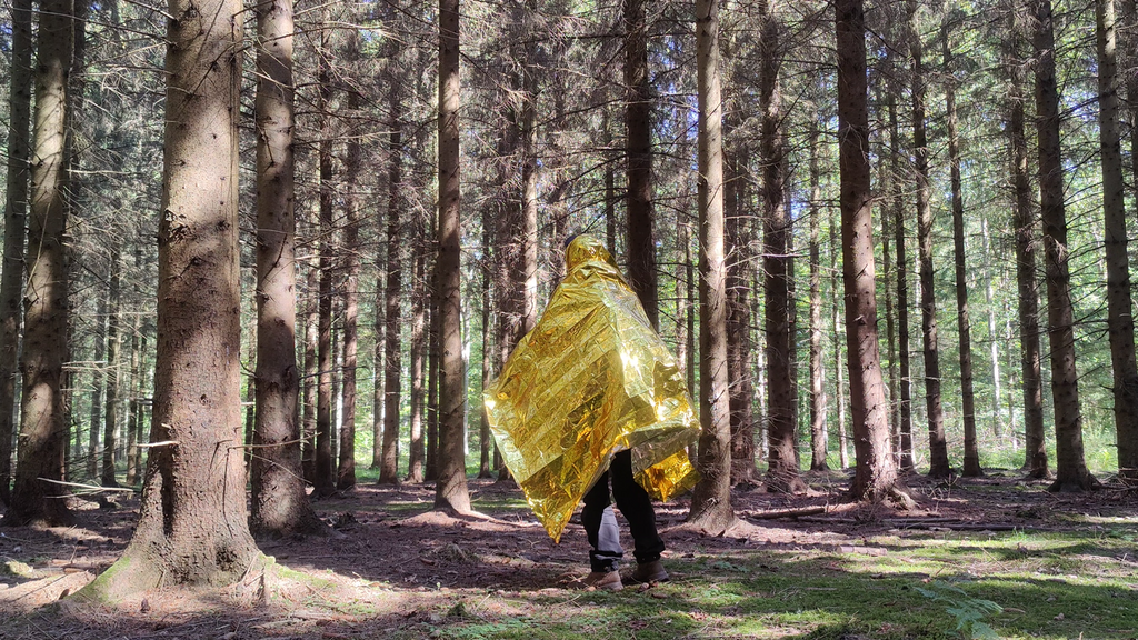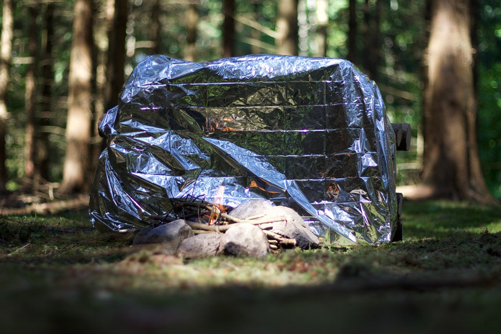 kan bruges til at skrærme sig mod vind og vejr, og på grund af den reflekterende overflade kan det også bruges til at signalere for hjælp.