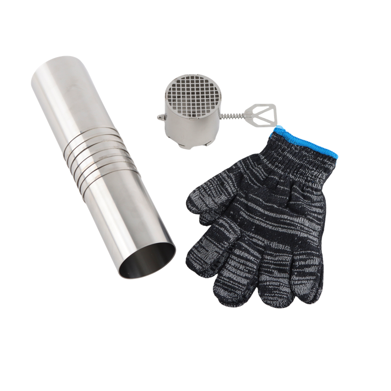 Der medfølger en fleksibel skorsten i folie. Den rulles nemt sammen og fylder meget lidt. Du monterer den let på ovnen, når du slår lejr.